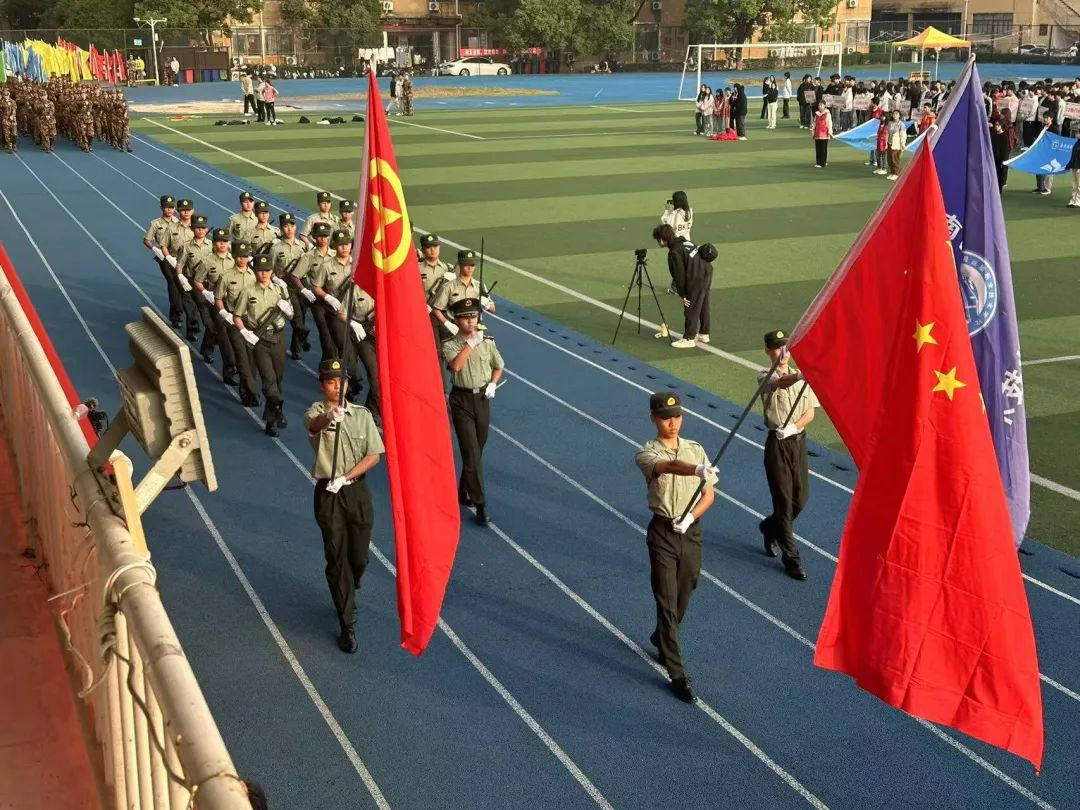 运动会开幕式在动感欢快的《运动员进行曲》中拉开序幕。首先,旗队方阵入场, 国旗护卫队以整齐的步伐、铿锵的气势,高举着国旗、校旗、团旗步入场内,经过主席台接受检 阅,紧随其后的是彩旗方阵。他们器宇轩昂,英姿飒爽,充分 展示了运校学子的精神风貌。青春当怀凌云志,鲜衣怒马奔新程,势必要在这场运动会上大放光芒。
