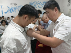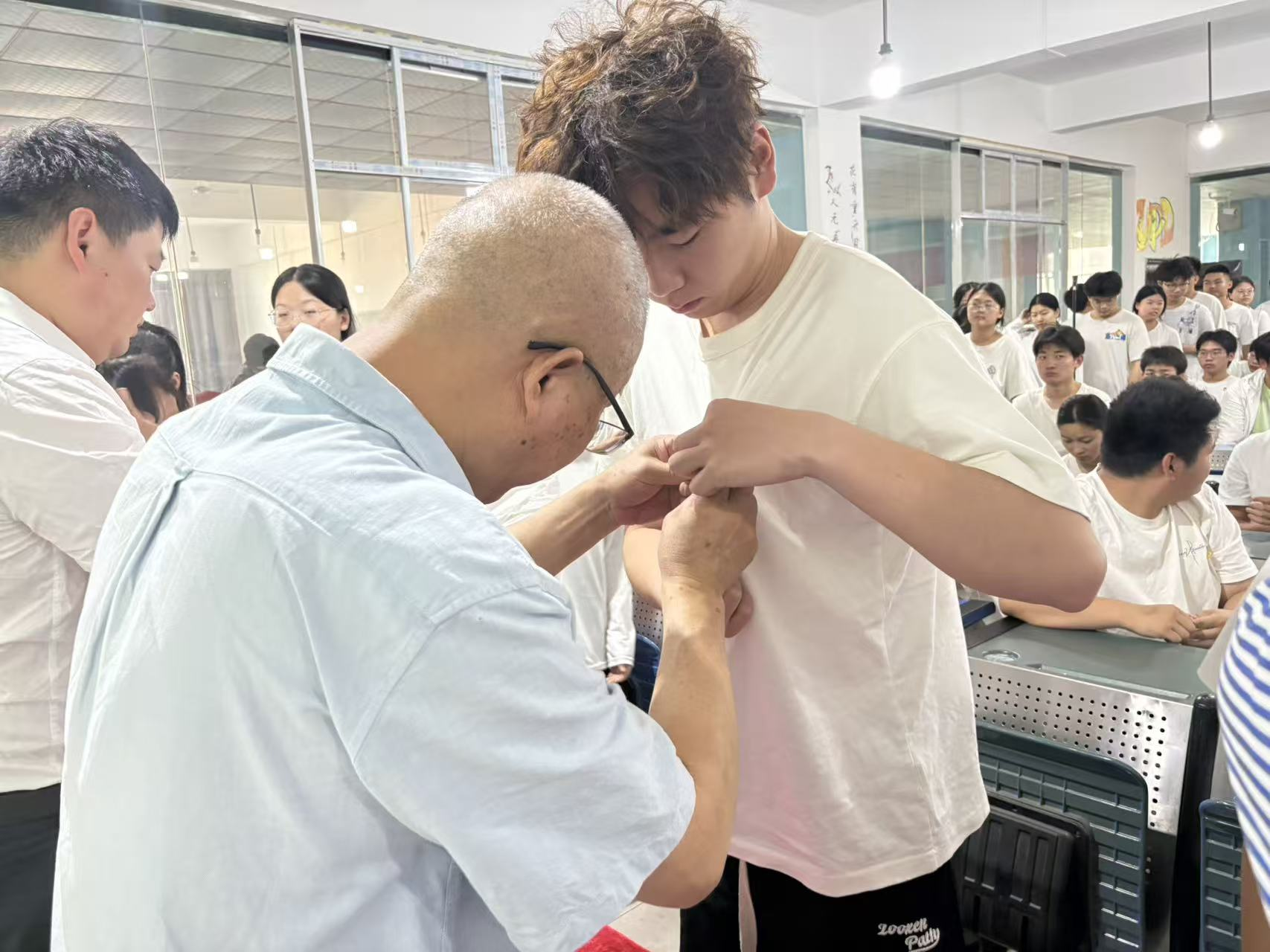 出席领导授予新团员标志并佩戴团徽,此举不仅标志着新团员正式加入共青团组织,更寄寓着对其恪守初心、勇毅前行的殷切期望。