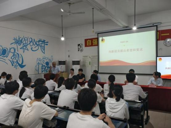 校党支部书记熊星对新团员深切寄语:希望同学们从现在开始,在追求理想的征途中,要明白不仅仅只是多了一个光荣称号,更重要的是自己多了一份责任感和使命感,要始终牢记入团誓词,切实履行团员权利和义务,努力成为一名优秀的共青团员。