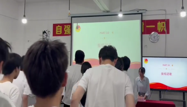 全体起立,奏唱团歌。最后仪式在雄壮的团歌声中拉下了帷幕。
